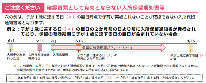 延長申請保育園申込+不承諾通知書必須1歳前月までに手続完了
